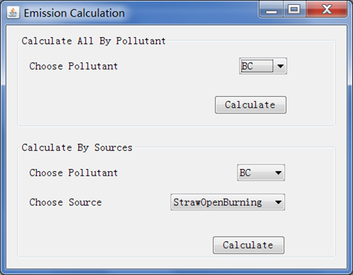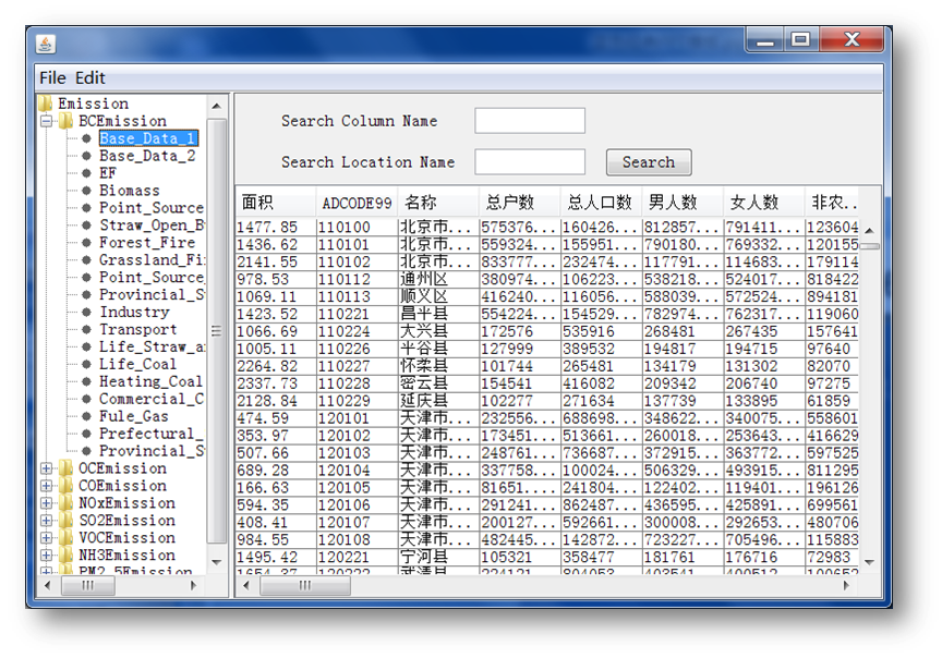 Create emission inventory: Database (MySQL): emission activity and emission factors; Data input, editing, inquiring and EI calculation (point, area and mobile sources).